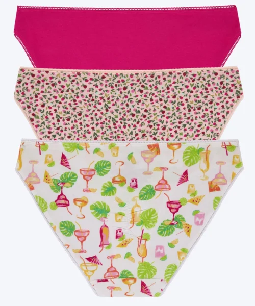 A classic bikini silhouette with cheeky coverage & shirred back detail for that perfect fit. Delicate picot elastic trims the waistband & leg line, and the panty is complete with a cotton jersey gusset liner for full hygienic protection.