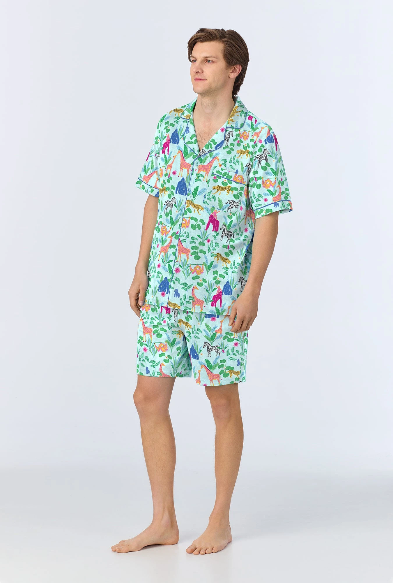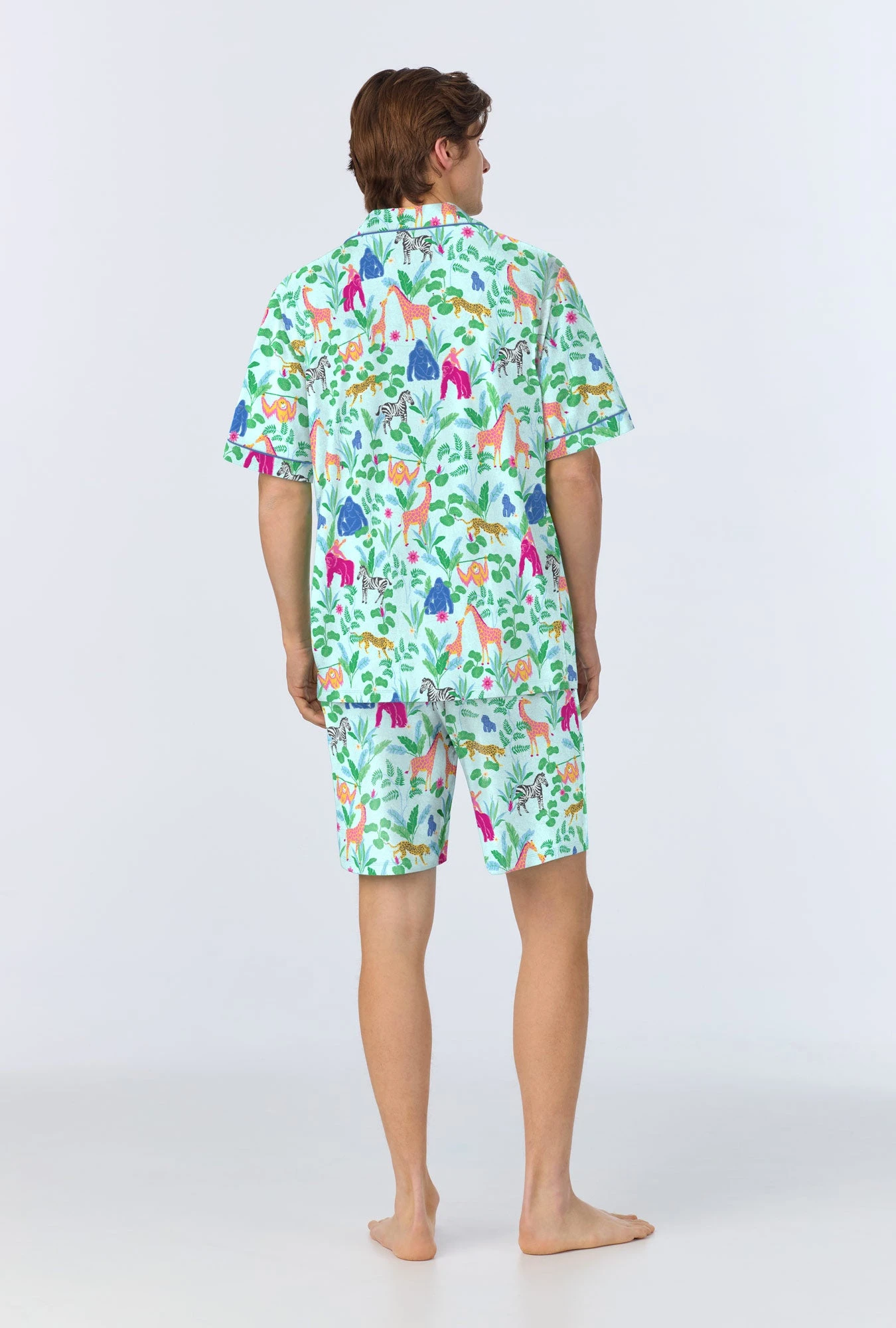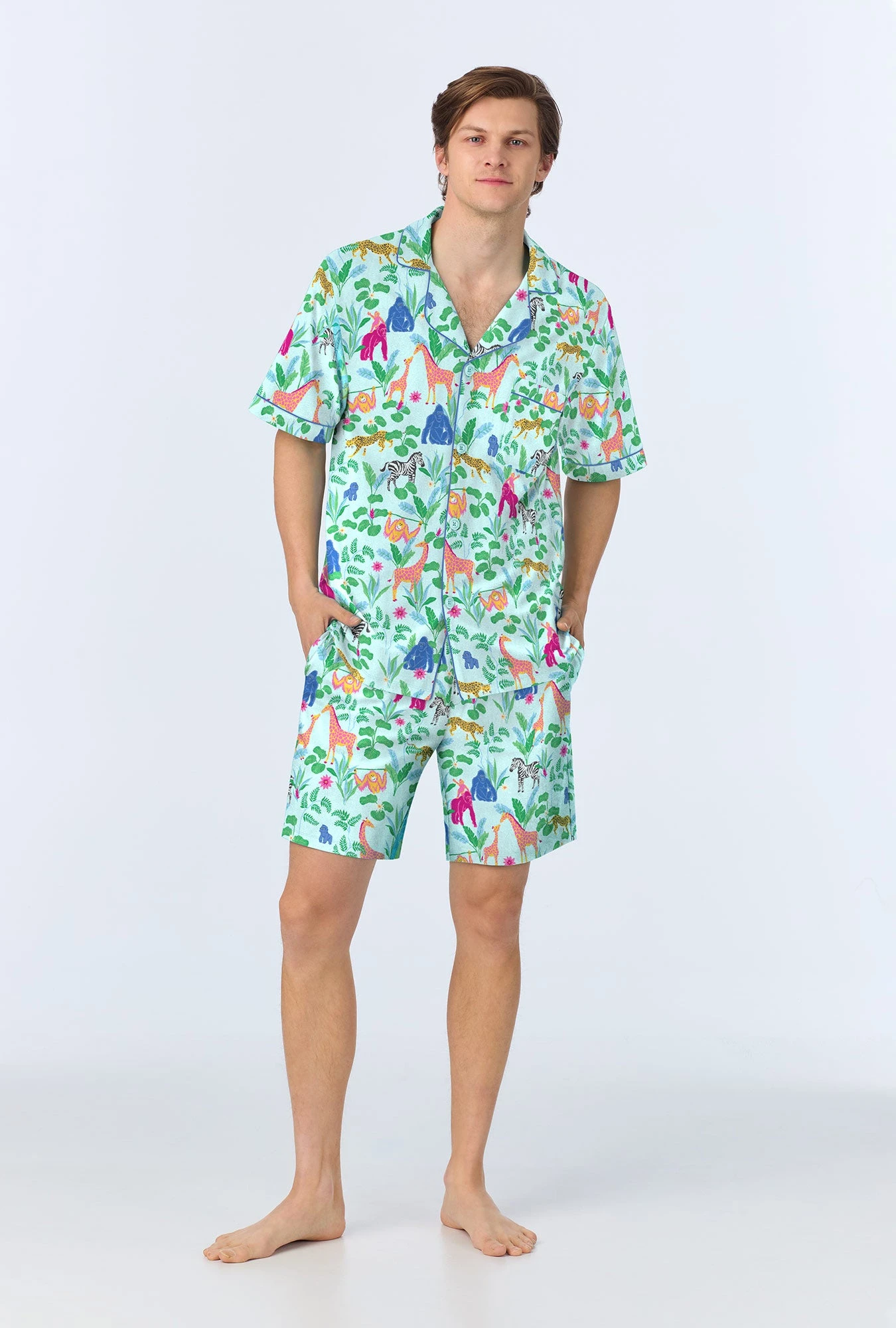 Our kids’ short sleeve pajama set brings the jungle vibes to bedtime. Made with soft organically grown cotton jersey, the top has a contrast crew neck while the pants feature an elasticated waistband. Made to keep bedtime playful and cozy.