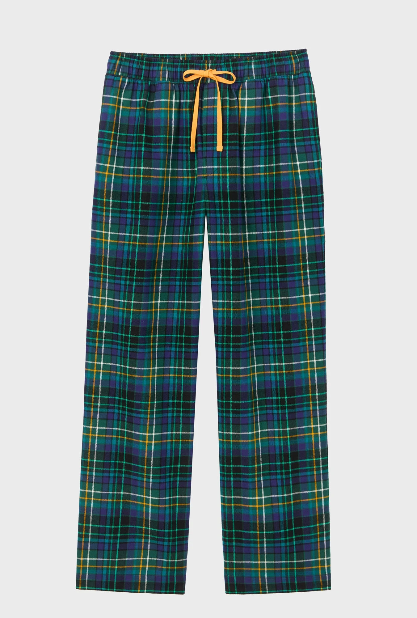 Classic and cozy, our men’s Portuguese flannel pajama bottoms in a green plaid chase the winter chill away. Ultrasoft pull-on pants with pockets and an elastic waistband with contrast drawstring are ideal for relaxing day or night.
