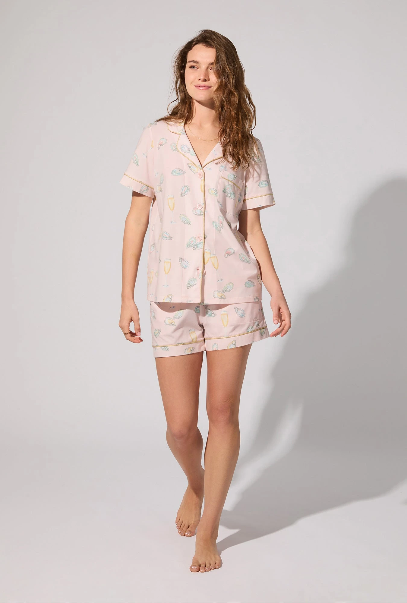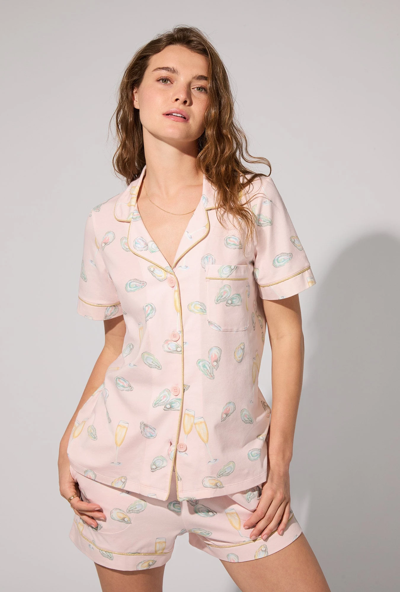 Fun, flirty, and fizz-worthy—this shorty set brings the bubbly vibes to bedtime. Featuring oysters, champagne, and ultra-soft cotton jersey, it’s your new go-to for summer nights and impromptu celebrations.