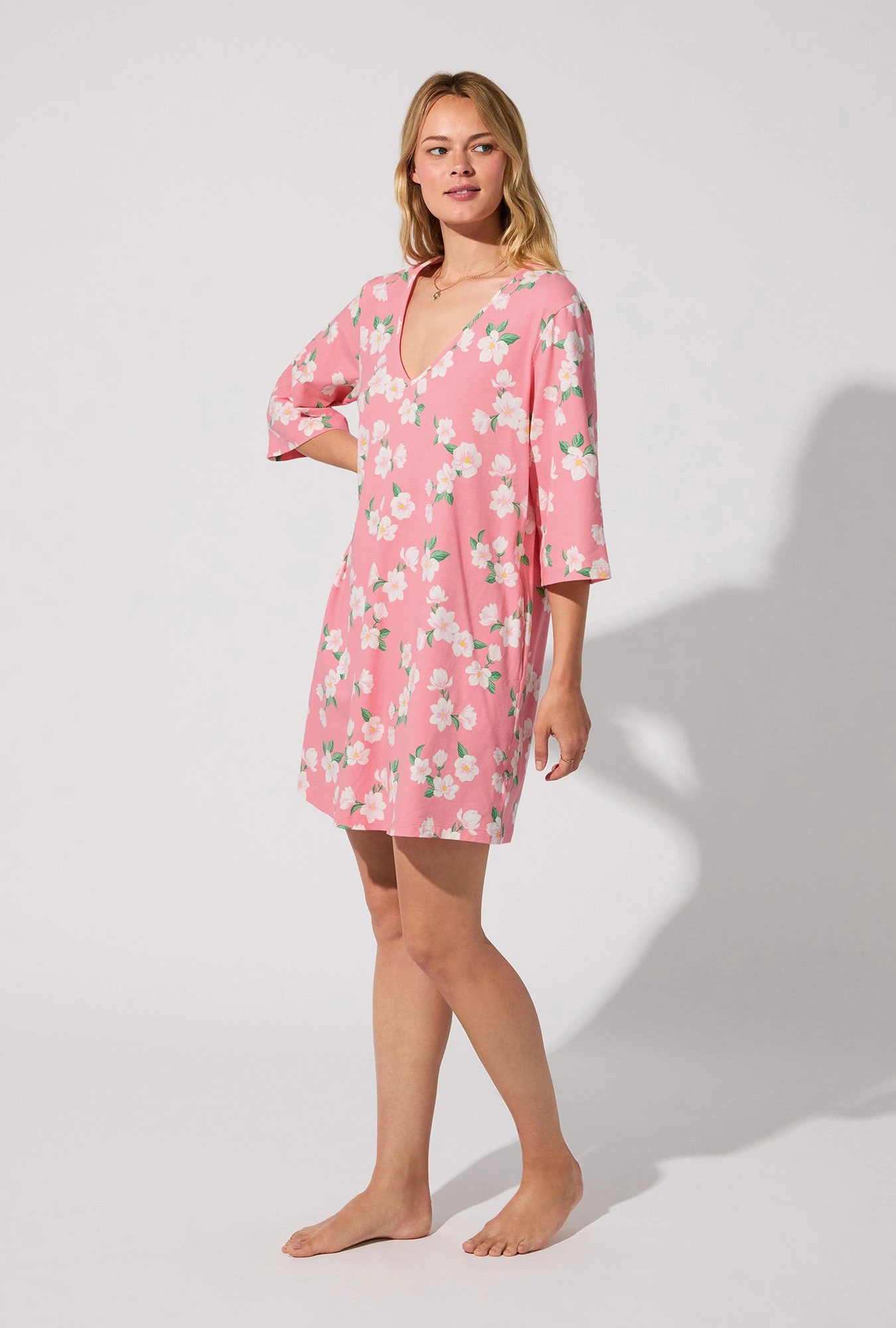 Slip into something effortlessly pretty with this V-neck sleep dress, blooming with soft magnolias. Light, breathable, and made for twirling from bed to breakfast.