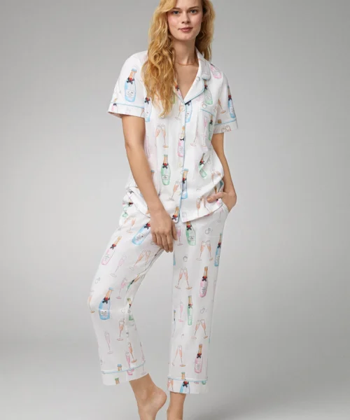 Bedhead X Bronwyn Newport Chic BoxersShort Sleeve Classic Stretch Jersey Cropped PJ Set