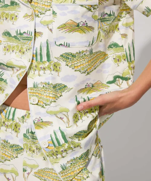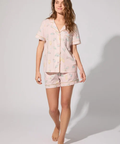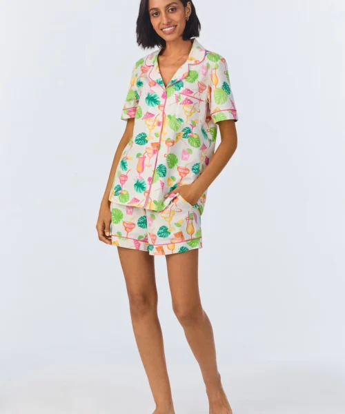 BedHead X Trina Turk Linear Floral Short Sleeve Classic Woven Cotton Poplin Shorty PJ Set