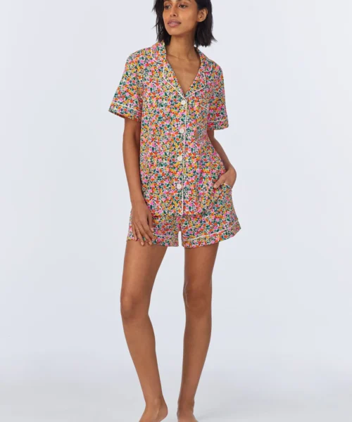 BedHead X Trina Turk Gardenia Short Sleeve Classic Woven Cotton Poplin Cropped PJ Set