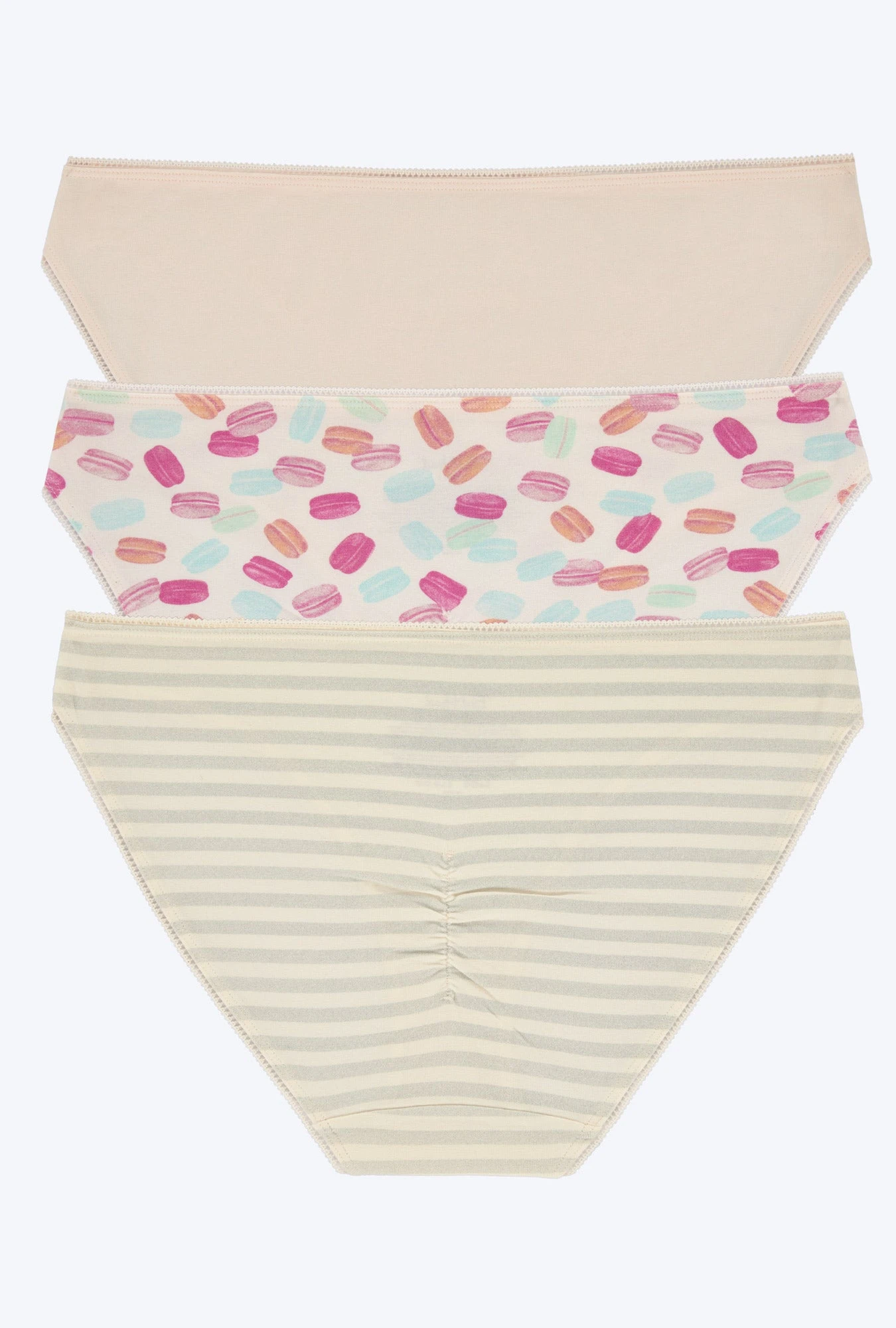 A classic bikini silhouette with cheeky coverage & shirred back detail for that perfect fit. Delicate picot elastic trims the waistband & leg line and the panties are complete with a cotton jersey gusset liner for full hygienic protection.