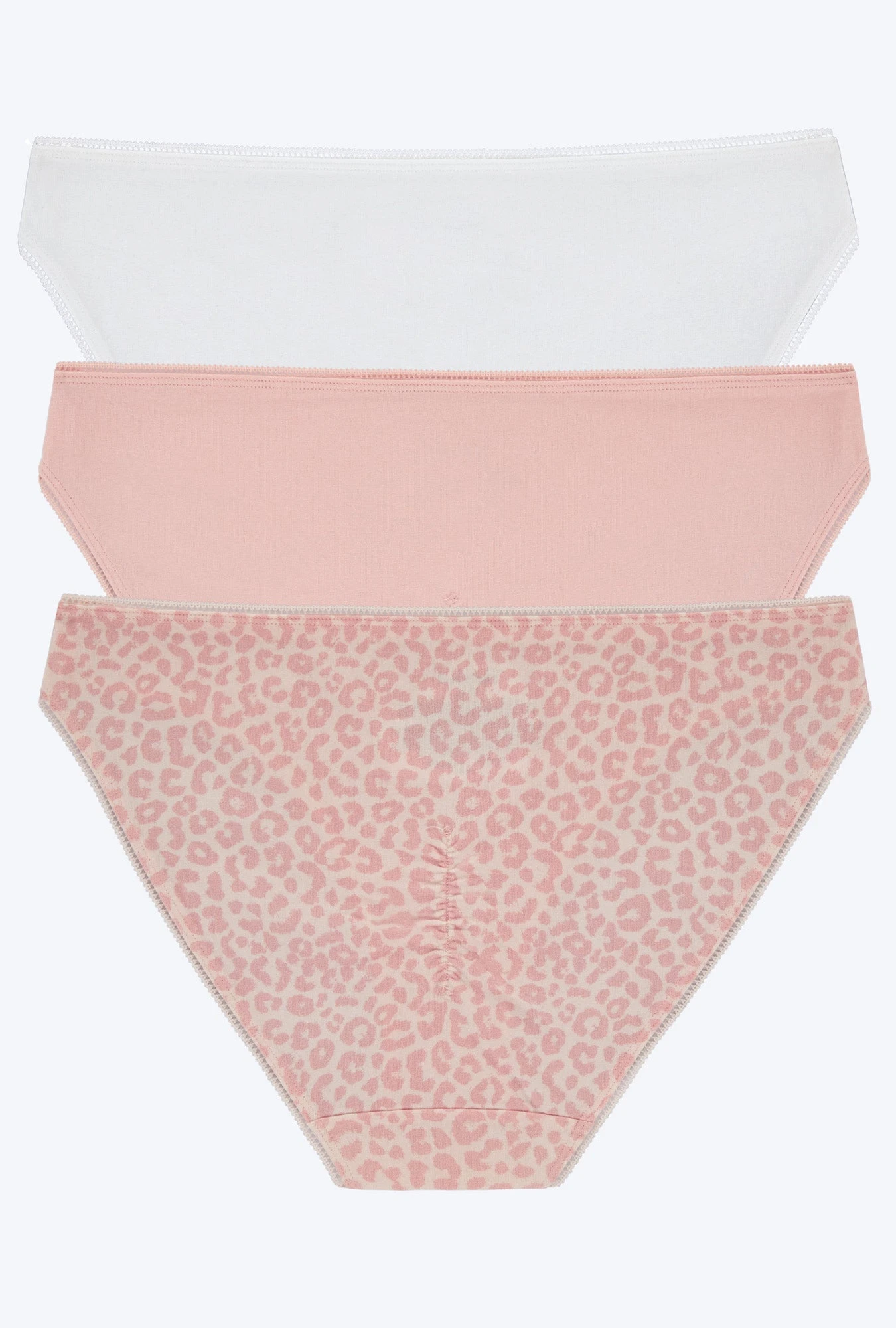 A classic bikini silhouette with cheeky coverage & shirred back detail for that perfect fit. Delicate picot elastic trims the waistband & leg line and the panties are complete with a cotton jersey gusset liner for full hygienic protection.