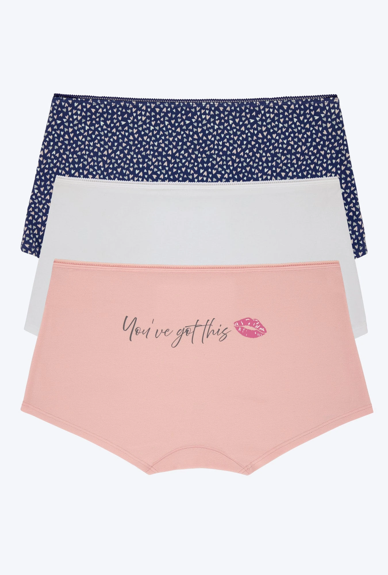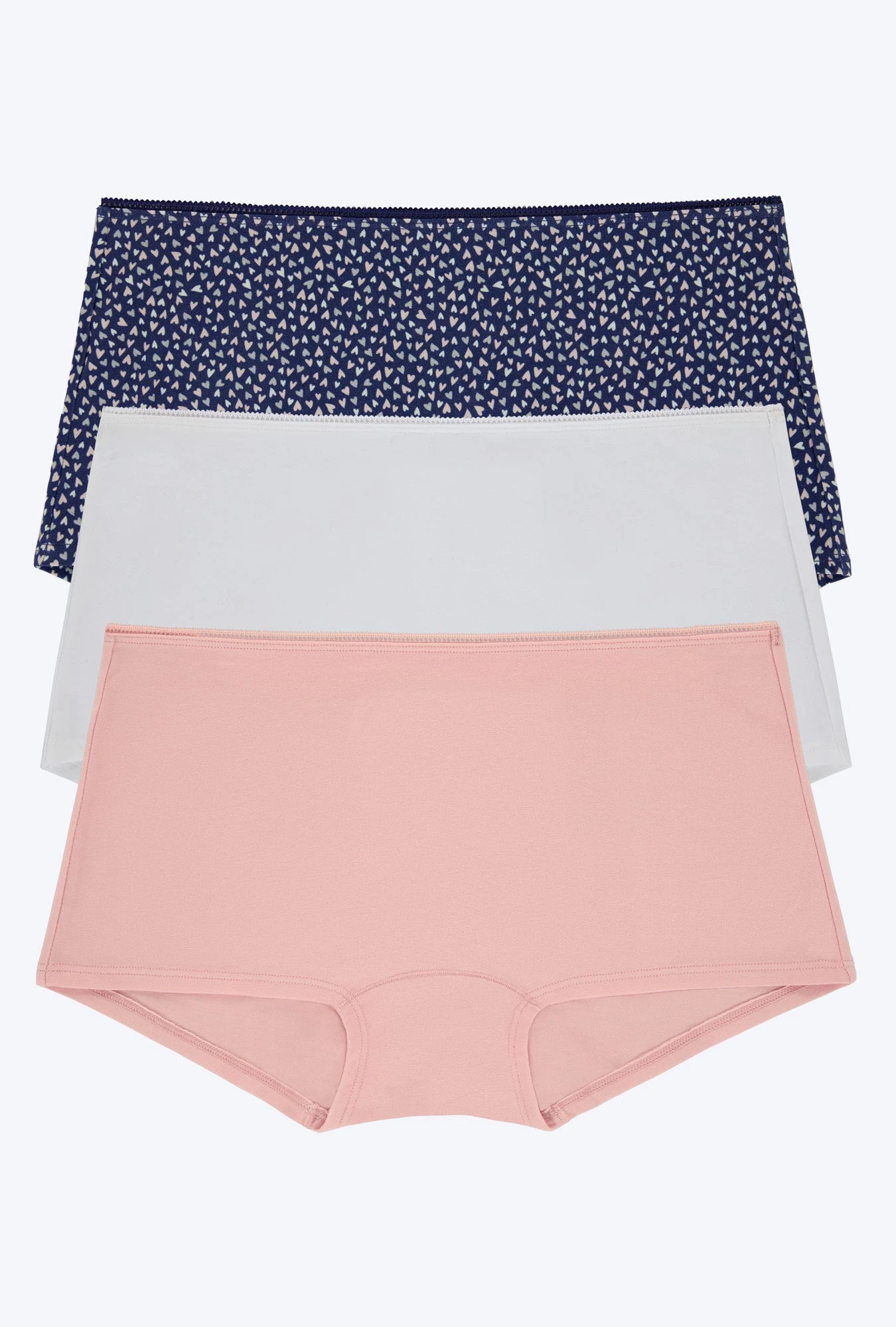 The classic boyshort silhouette provides the perfect canvas for our endless variety of prints & novelty touches. Providing perfectly cheeky coverage while the cutest picot elastic trims the waistband edge. Gusset is lined with cotton jersey for full hygienic protection.