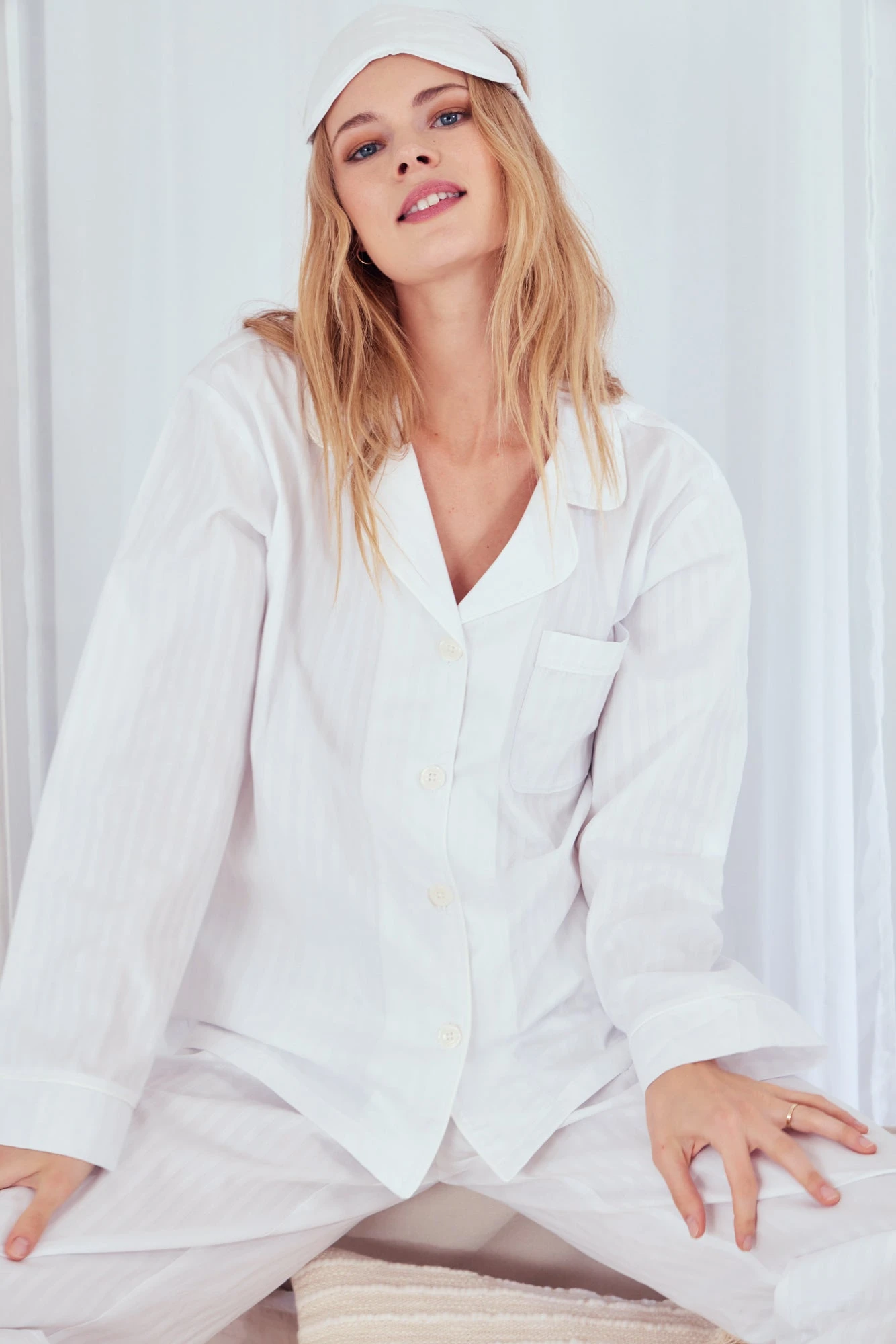 Available in three pastel hues, our sleep mask is covered in our interpretation of the classic stripe.