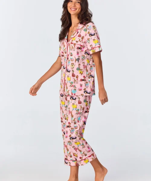 Bedhead X Bronwyn Newport Chic BoxersShort Sleeve Classic Stretch Jersey Cropped PJ Set