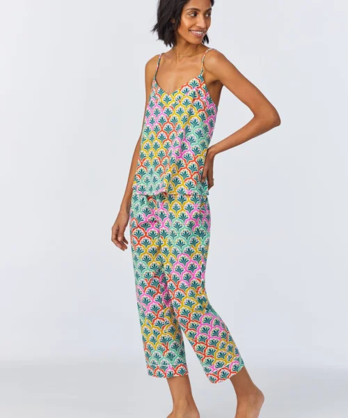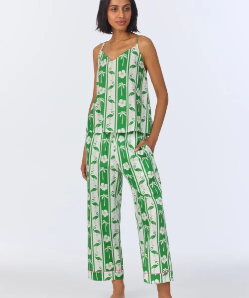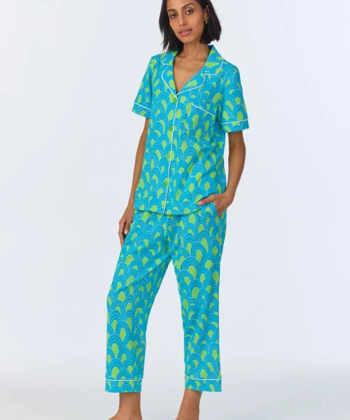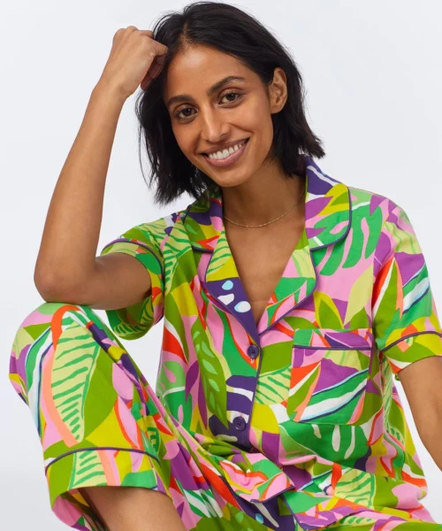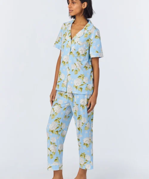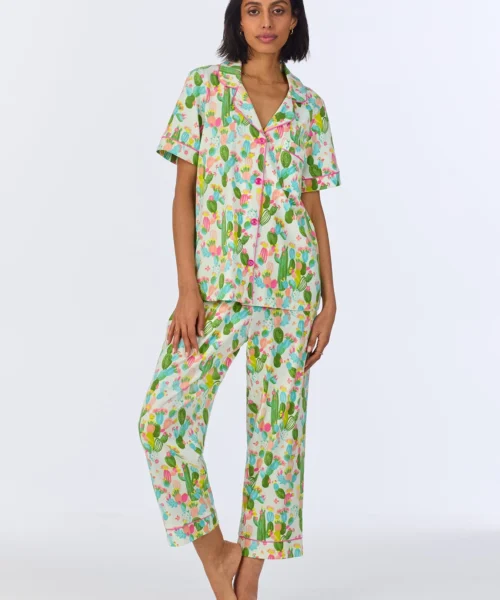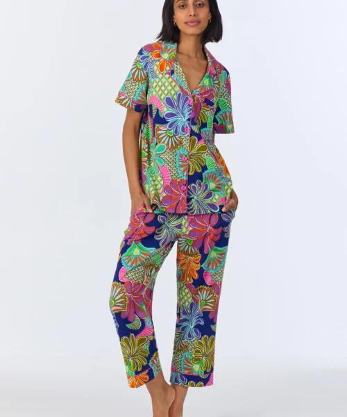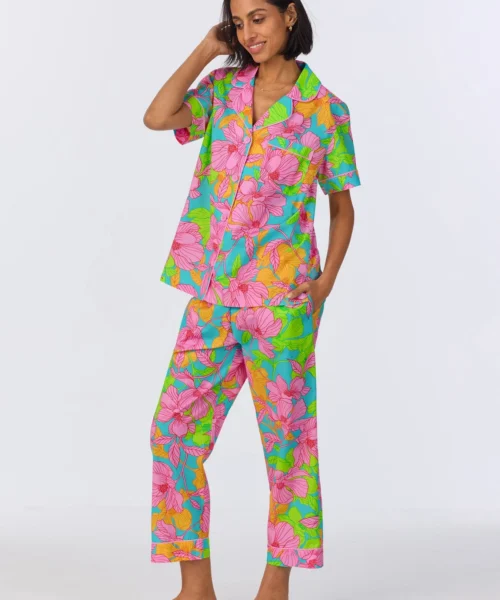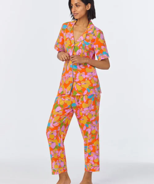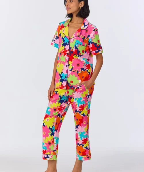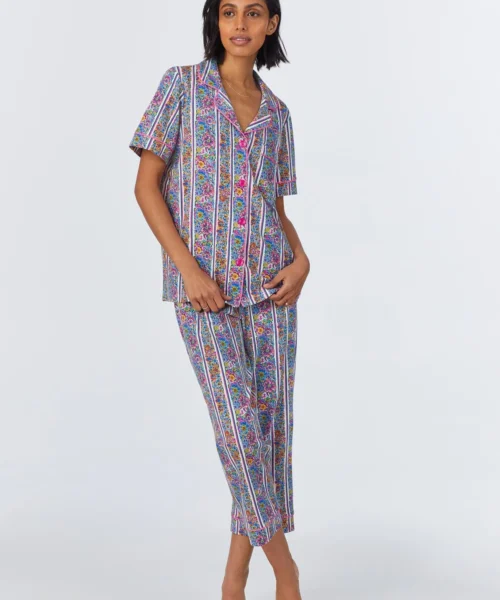 BedHead X Trina Turk Linear Floral Short Sleeve Classic Cropped Woven Cotton Poplin PJ Set